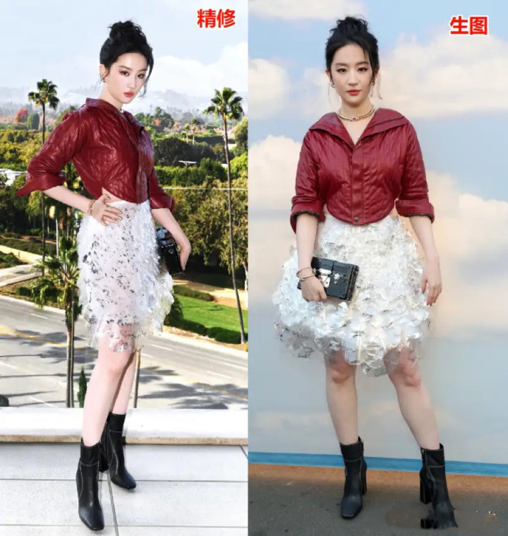 精修图上的刘亦菲整体造型看起来,特别的酷飒,完全没有生图上的感觉。